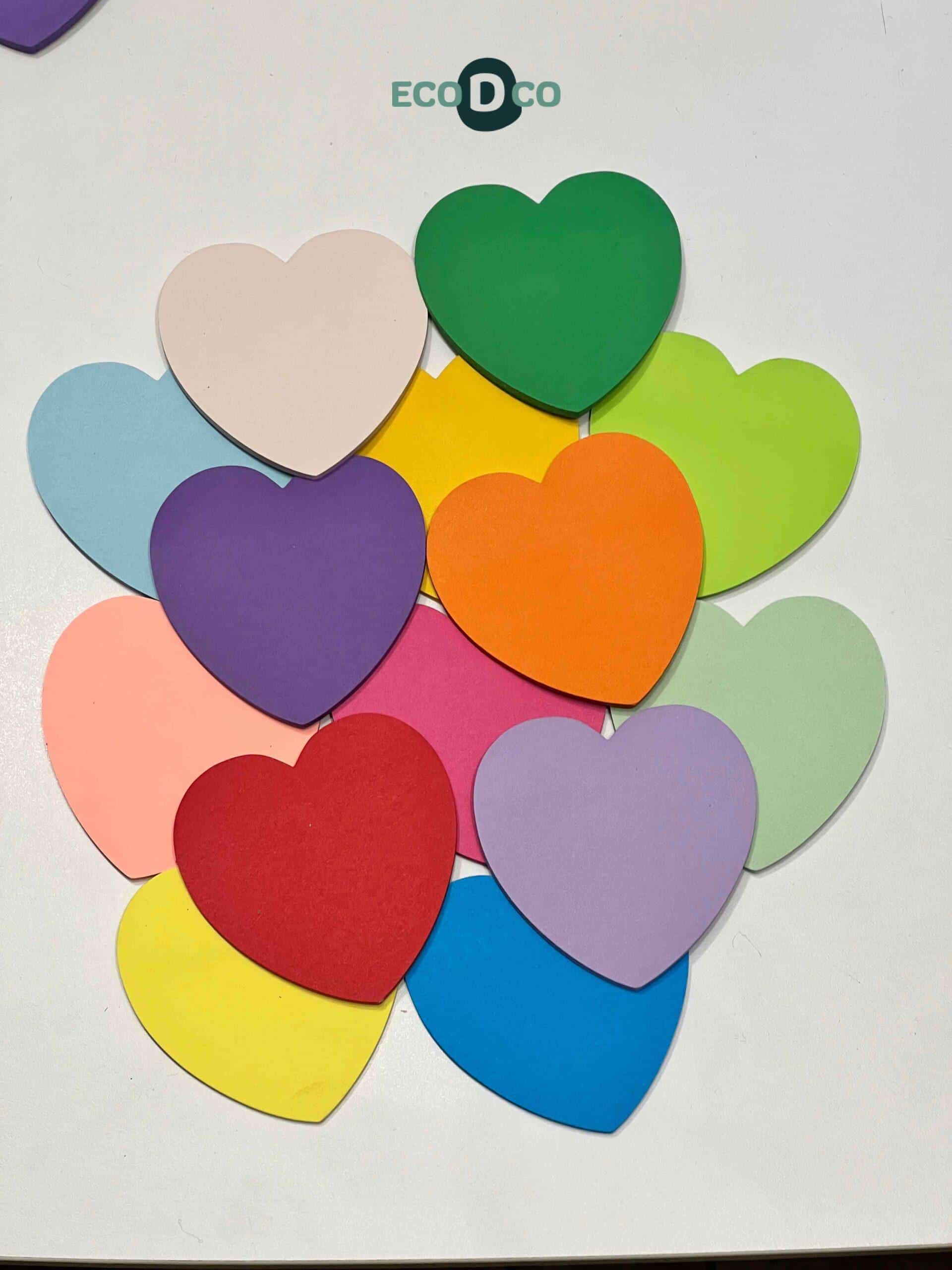 Je vend un lot de postit en forme de coeur de toutes les couleurs.